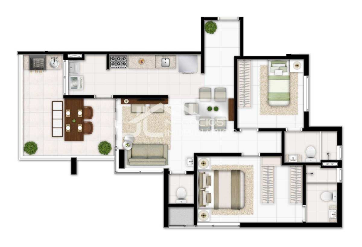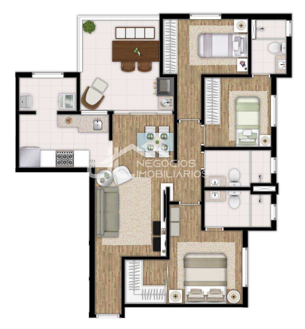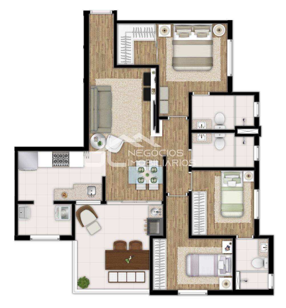 Opções com 1, 2 ou 3 dormitórios (todos com suítes), 2 ou 3 vagas de garagem