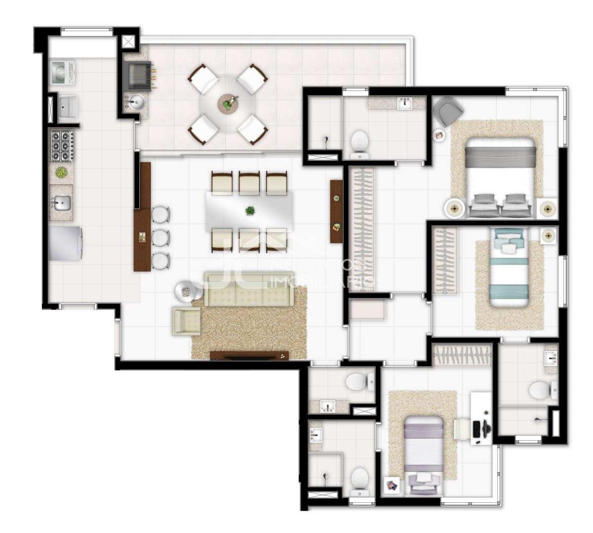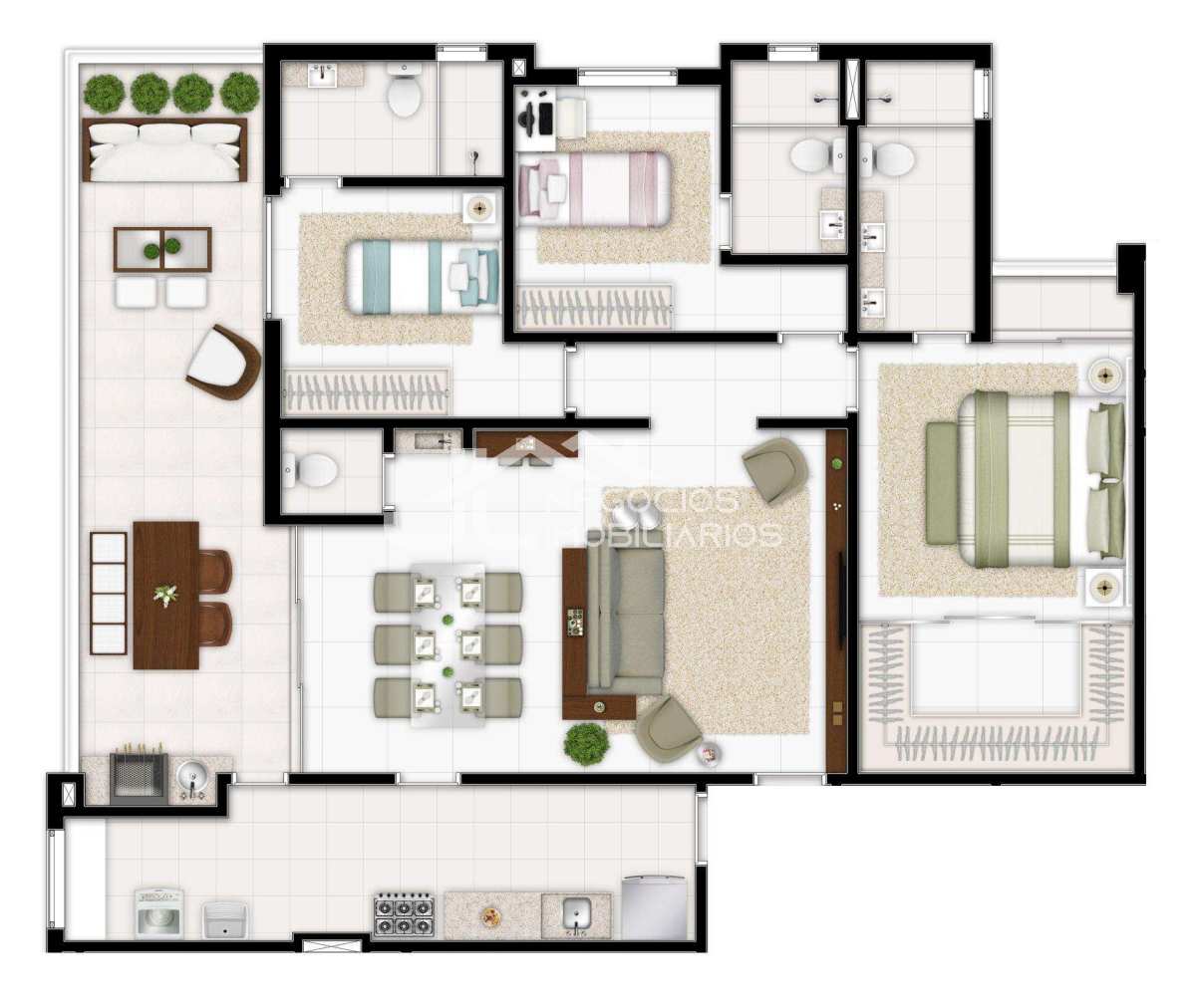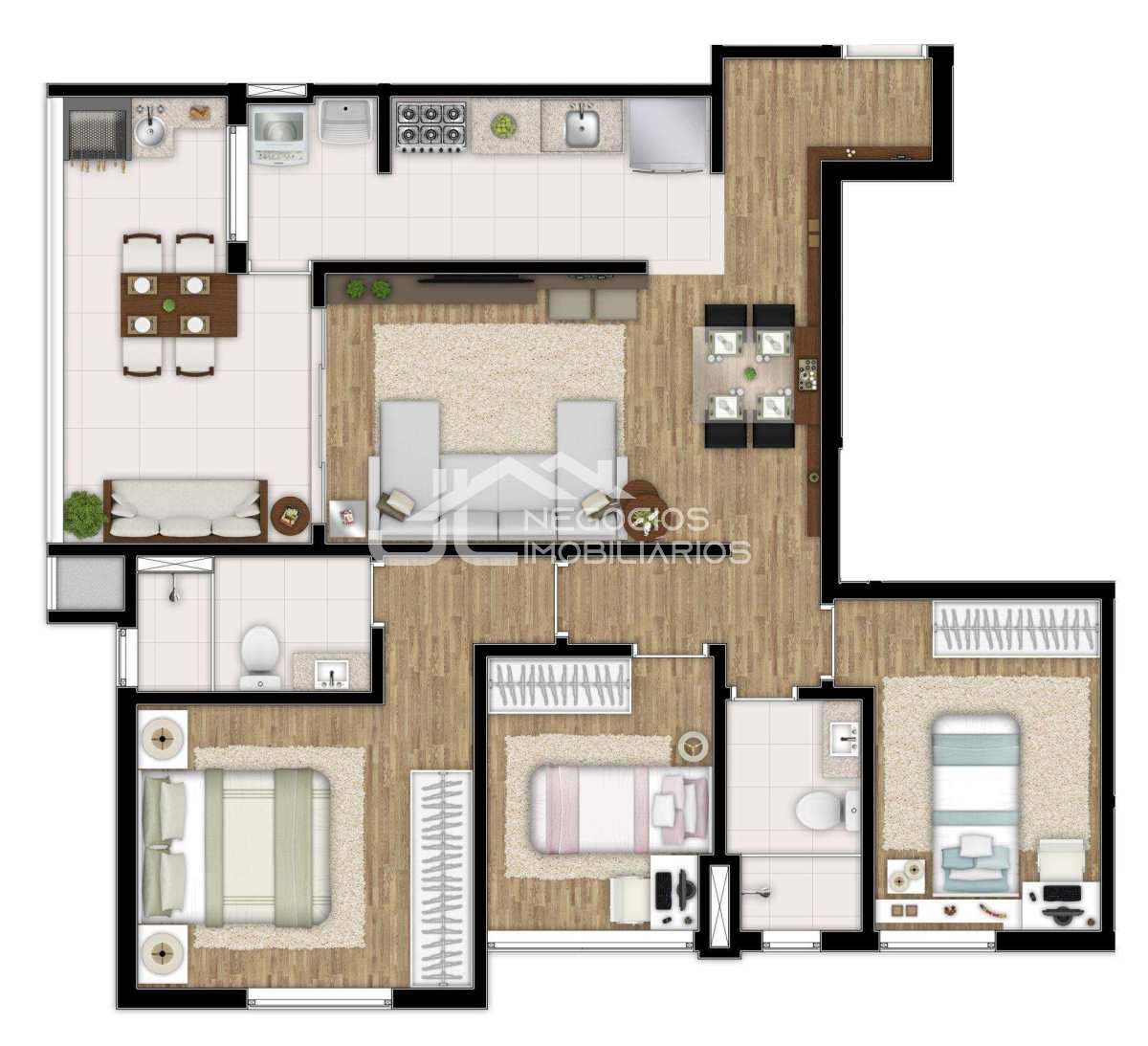 Opções com 1, 2 ou 3 dormitórios (todos com suítes), 2 ou 3 vagas de garagem
