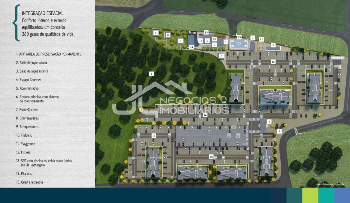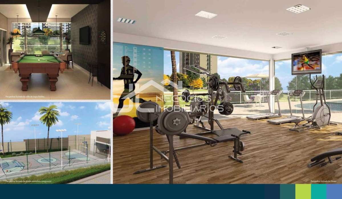 Condomínio com lazer completo: Salão de festas, piscina, quadra poliesportiva, quiosque com churrasqueira, academia, playground, salão de jogos, spa/sauna