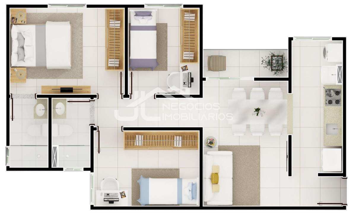 Apartamento com: 3 dormitórios (sendo 1 suíte), sala 2 ambientes, cozinha, varanda