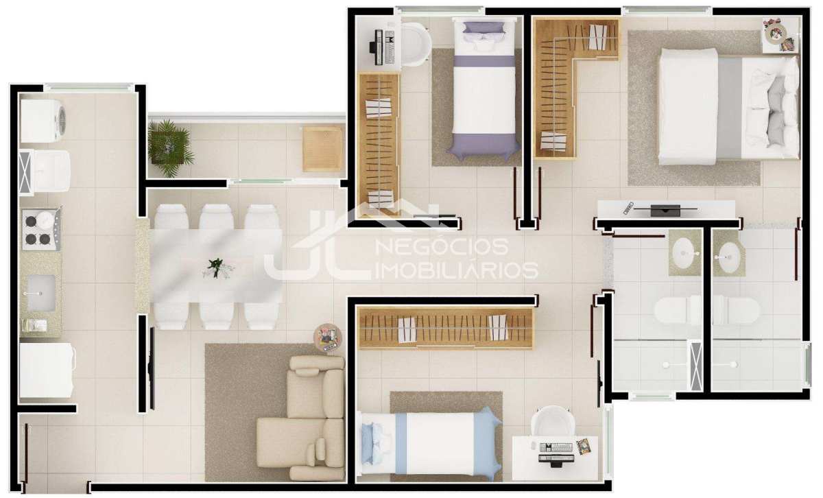 Condomínio com lazer completo: Salão de festas, piscina, quadra poliesportiva, quiosque com churrasqueira, academia, playground, salão de jogos, spa/sauna