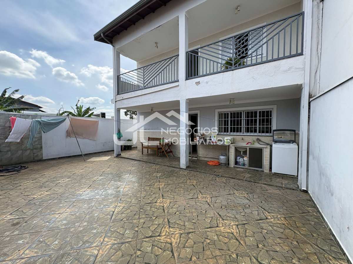 Espaço externo com área de serviço, área gourmet, banheiro social, 1 dormitório e ampla garagem