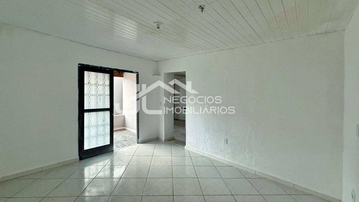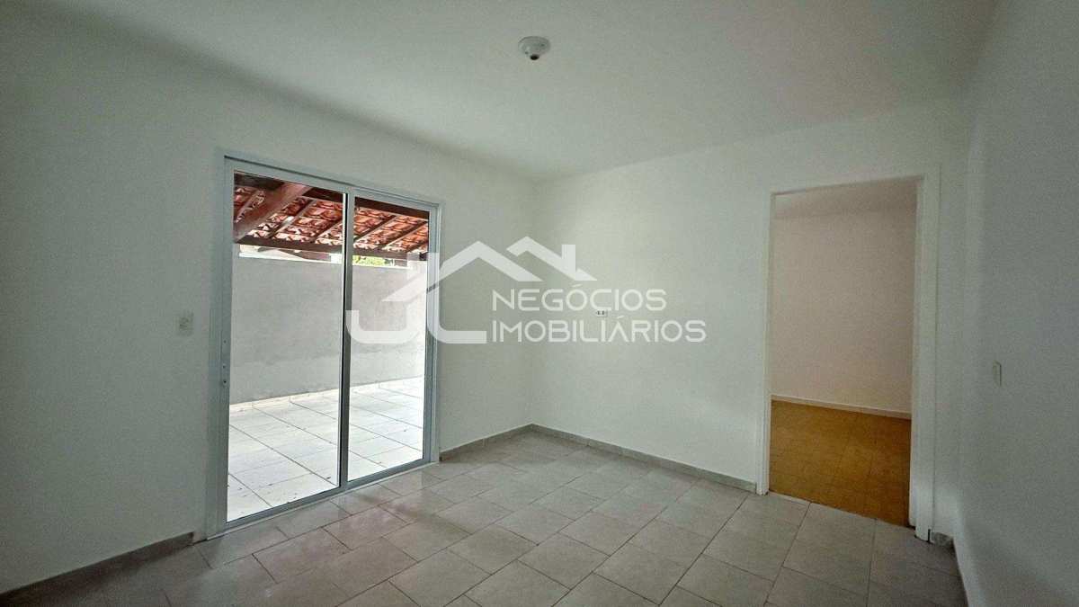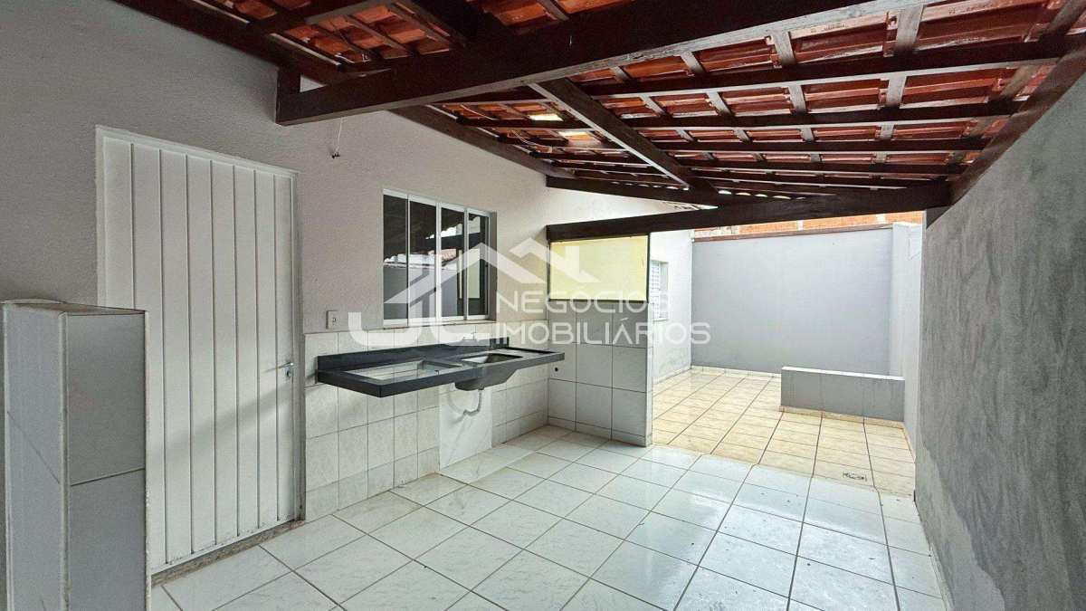 Casa com: sala de estar, cozinha, 3 dormitórios, 2 banheiros, área de serviço