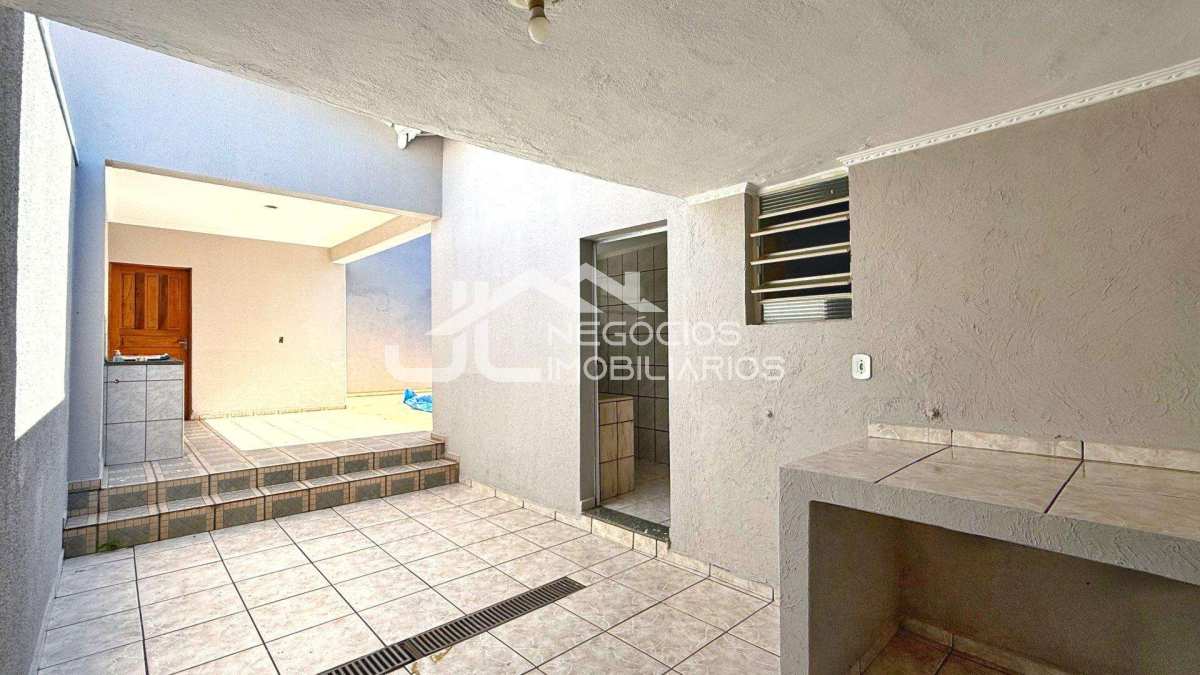 Casa com: sala de estar, cozinha, 3 dormitórios (sendo 1 suíte), banheiro social, área de serviço, piscina e garagem coberta