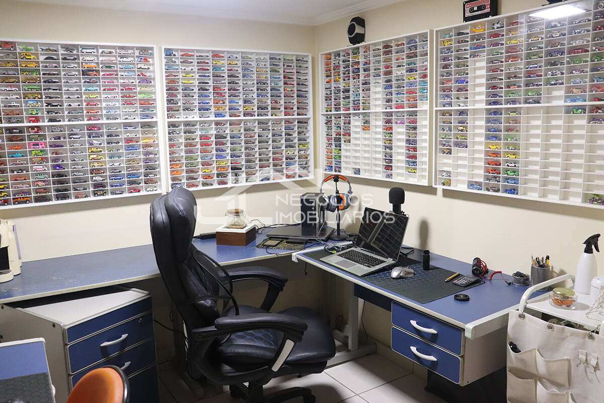 Casa com: sala de estar, sala de jantar, escritório, cozinha, área de serviço, 2 dormitórios (sendo 1 suíte), banheiro social, quintal e garagem coberta
