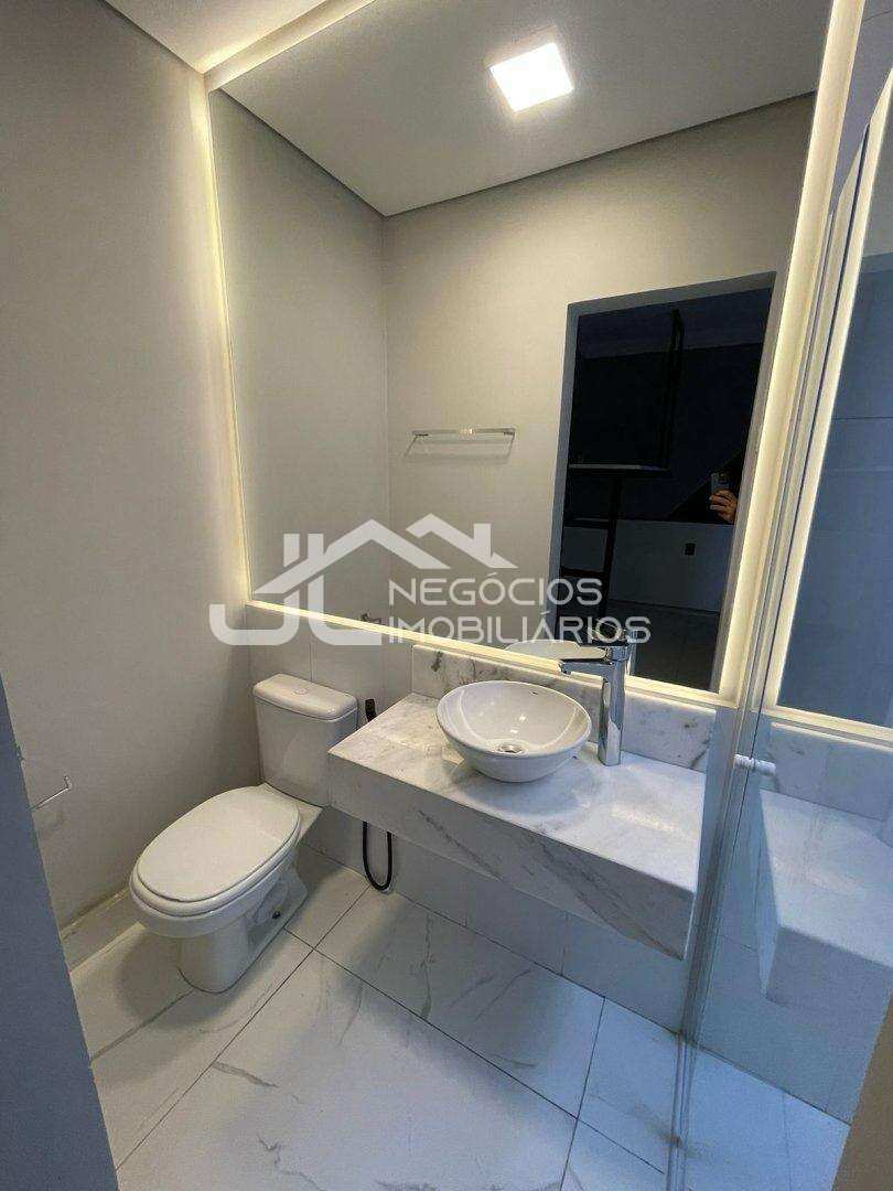 Casa com: sala de estar, sala de jantar, cozinha, 3 suítes, escritório, banheiro social, ampla área gourmet, piscina, 4 vagas de garagem