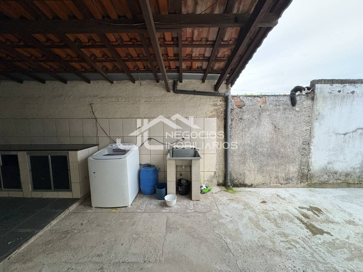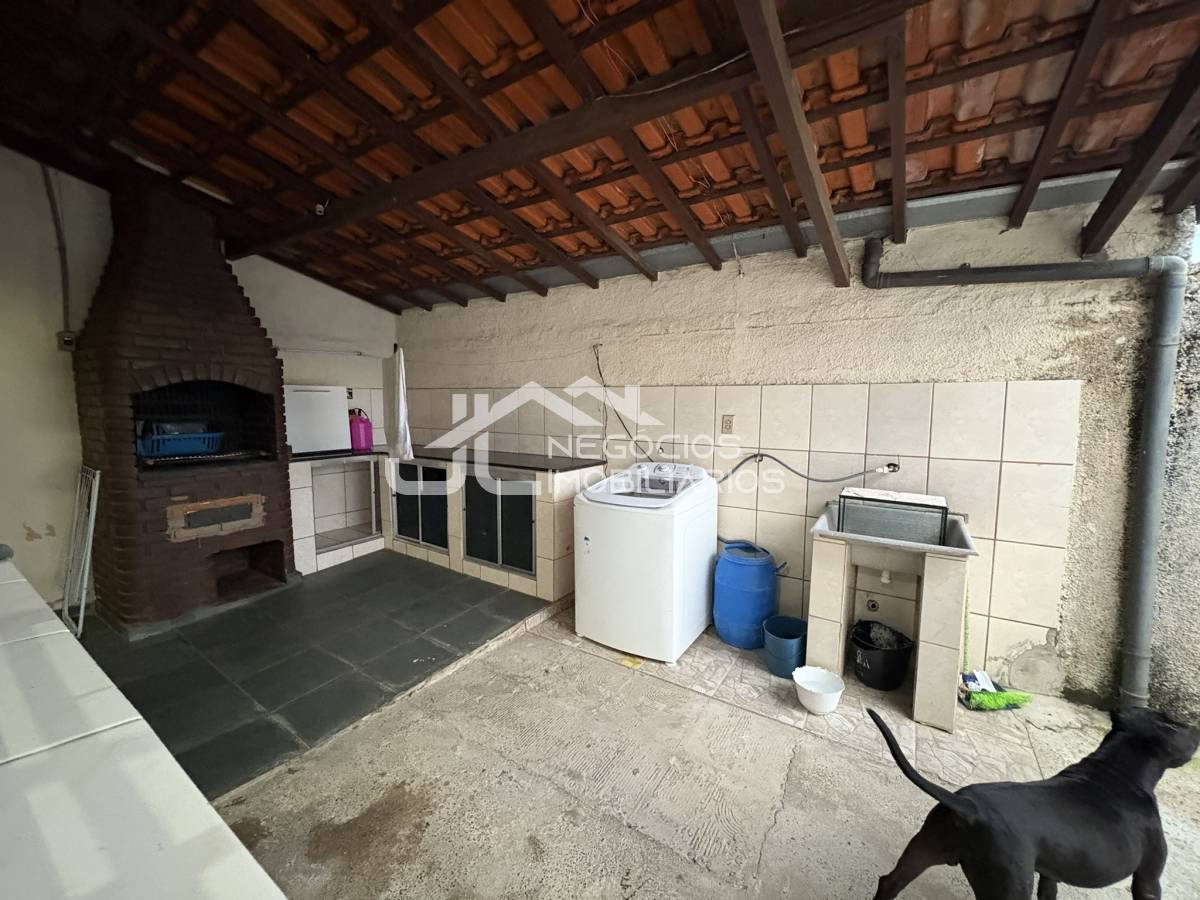 Casa com: 2 dormitórios, banheiro social, cozinha, sala 2 ambientes, área com churrasqueira, área de serviço e ampla garagem.