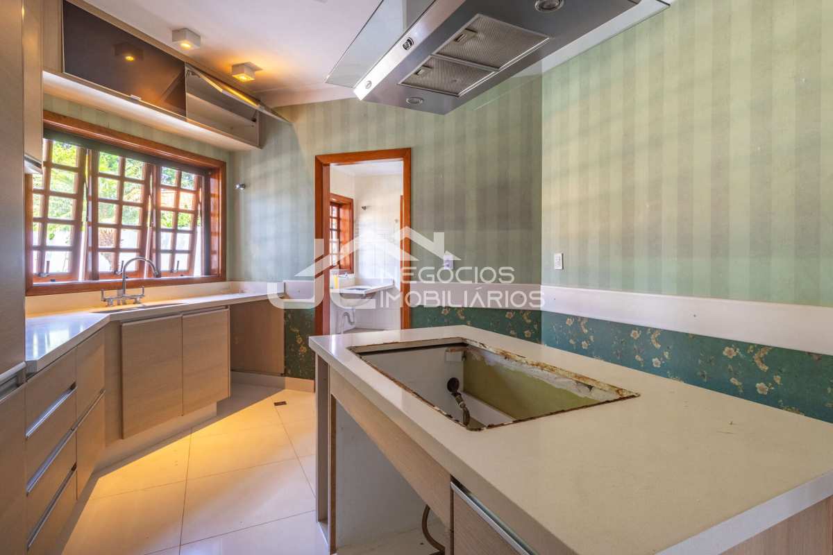 Pavimento térreo: Sala de TV, Sala de estar com lareira, Lavabo, Sala de jantar, Cozinha, Área de serviço, Dependência de emprega