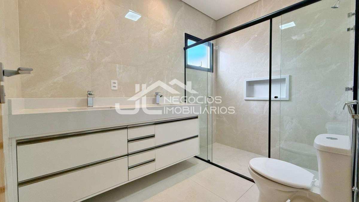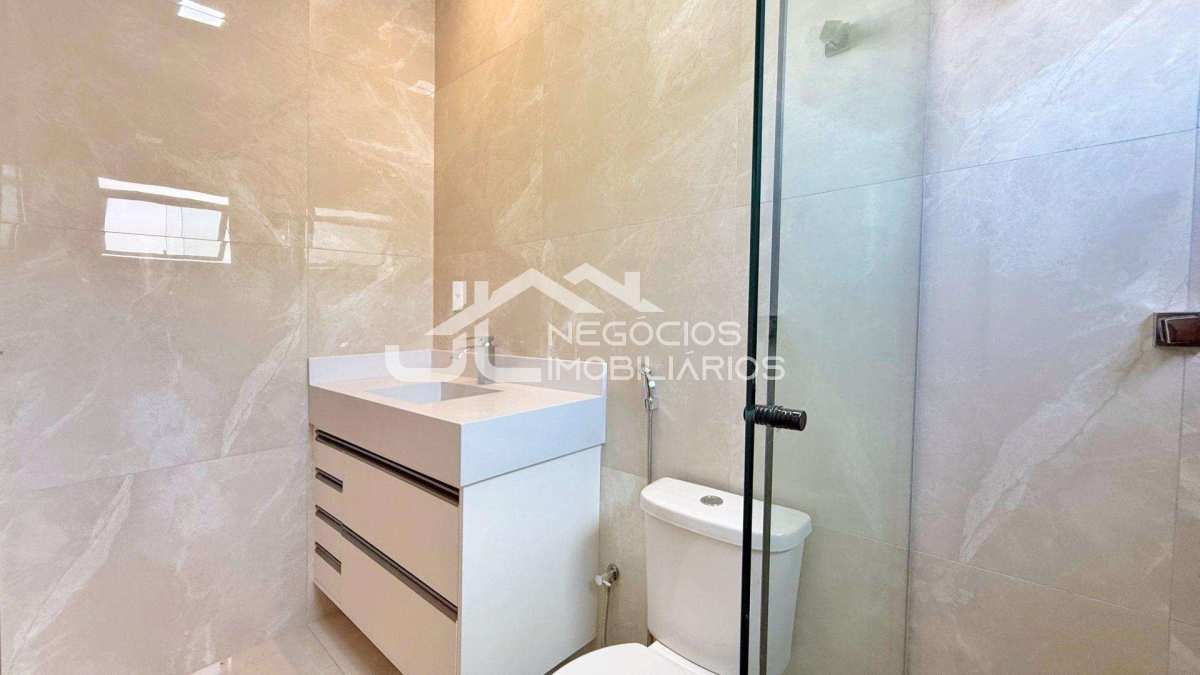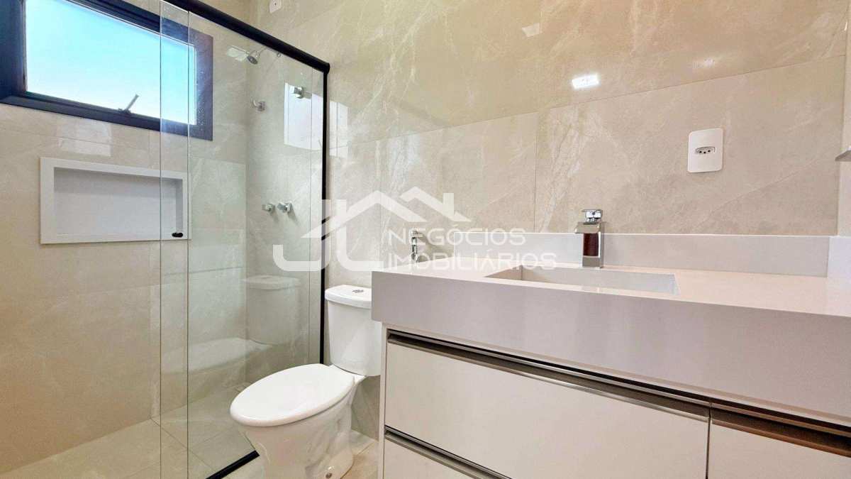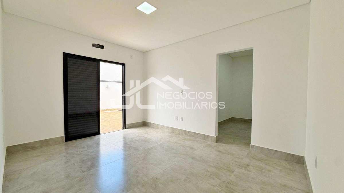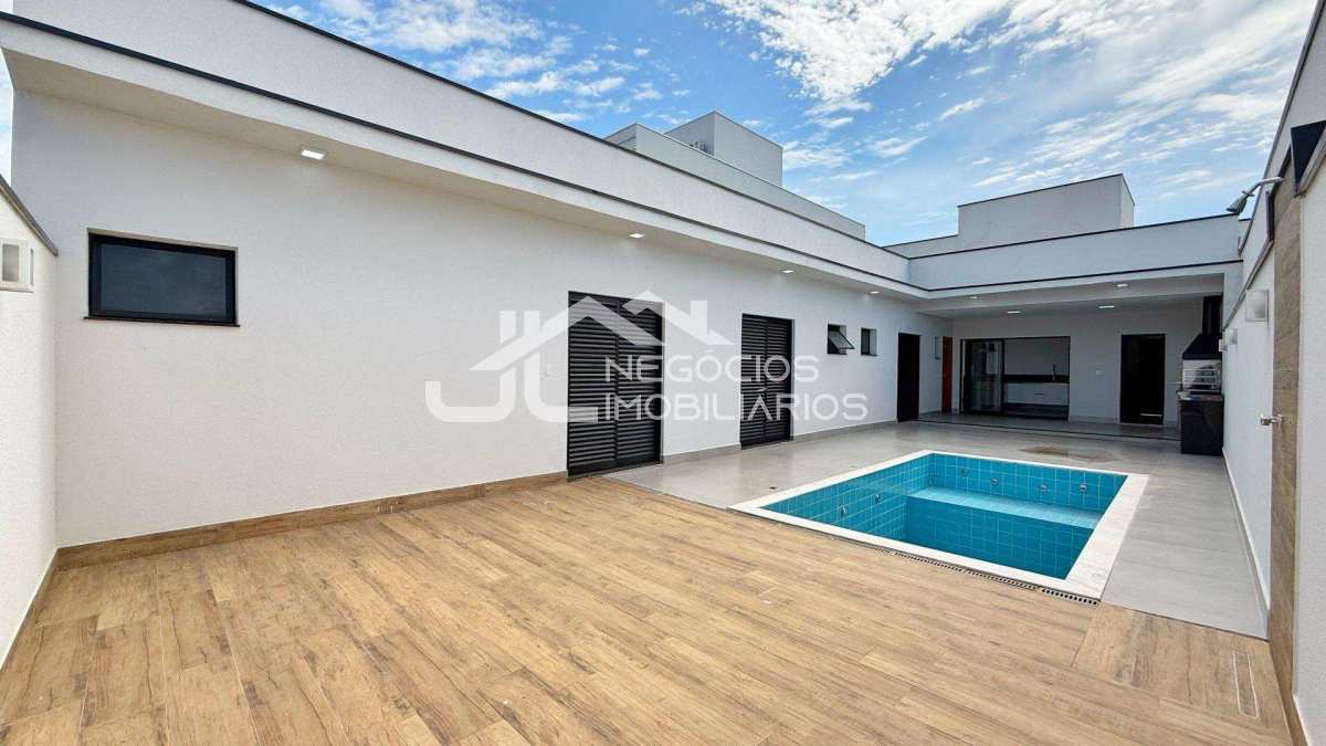Casa com: sala 2 ambientes, cozinha integrada, 3 suítes (uma com closet), banheiro social, espaço gourmet com churrasqueira e piscina