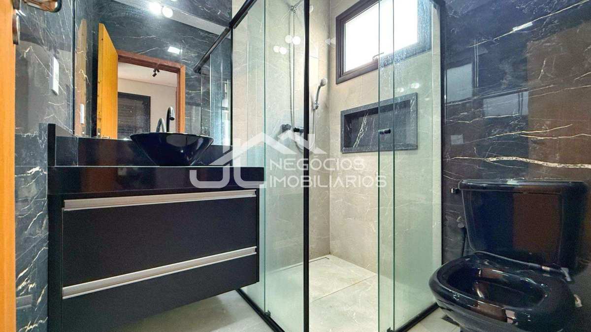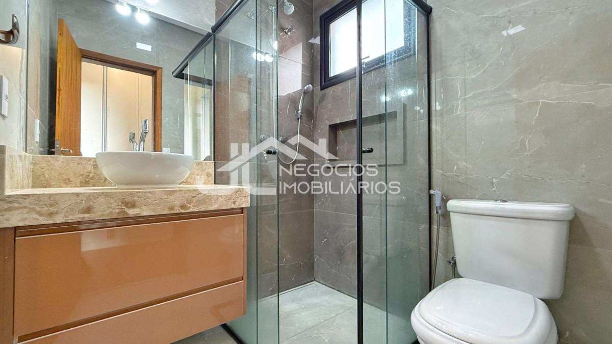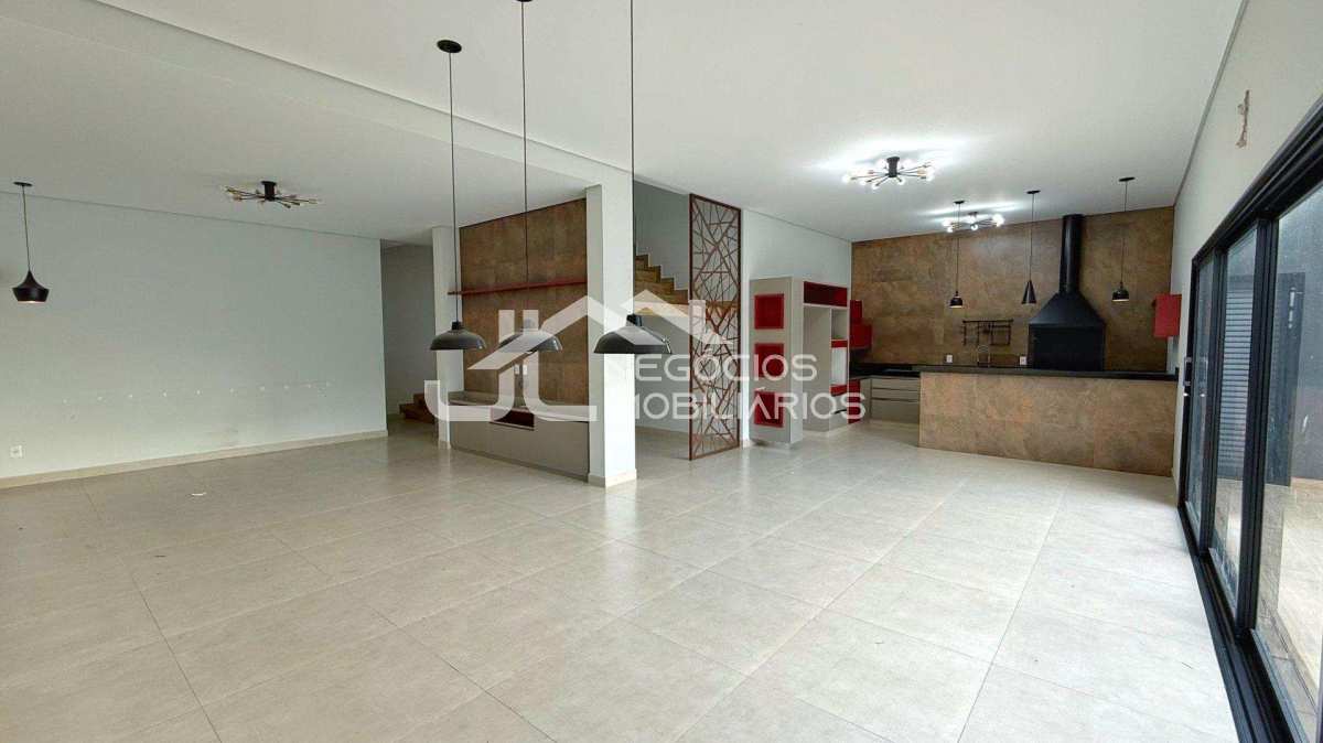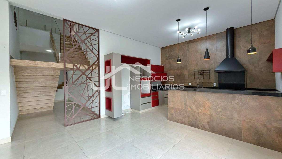Amplo sobrado com: 3 suítes com closet (sendo uma master), sala de estar e cozinha no andar de cima, sala de estar/jantar, cozinha com churrasqueira, espaço gourmet e piscina no andar de baixo