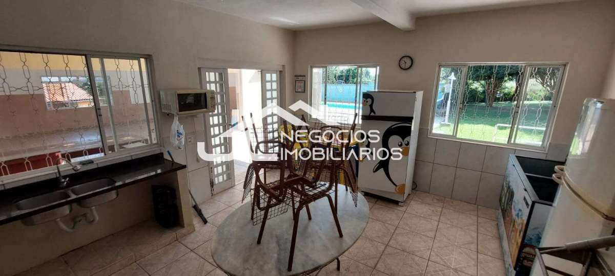 Ampla chácara com: 2 suítes, sala de jogos, cozinha, amplo salão, churrasqueira, 2 banheiros sociais, área de gramado para futebol, árvores frutíferas, piscina, poço semi-artesiano